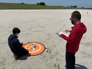 21期ドローンスクール3日目 2022年5月19日 5月18日、実技実習2日目です。 お天気にも恵まれ、屋外実習も無事できました! 午後は屋内に戻ってきて夜間・目視外飛行の練習です。 夜間飛行は室内の電気を消して行うので、ランディングパットの周りにランタンを置いておきます。 目視外飛行はドローンに背を向けてモニターを見て操縦します。 実技実習2日目は盛り沢山の内容でした。