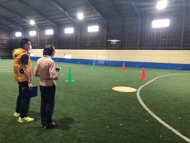 22期ドローンスクール2日目 2022年7月3日 2日目、実技実習です。 実技実習は室内で行います。 深谷ドローンスクールは深谷スポーツヴィレッジというフットサル場をお借りして行っています。 夏はホントに暑くて大変ですが、皆さん一生懸命練習をしていました。 次は屋外での実習も行います。 外で飛ばすと楽しいと思いますので、暑いけど頑張りましょう!!