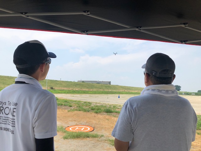 22期ドローンスクール3日目 2022年7月4日 3日目、午前中は屋外実習を行いました。 屋外実習は中瀬ソフトボール場という場所で行います。 広くて飛ばしやすいです。 Phantom以外の機体、InspireとMavicも飛ばしていただきました。 ちょっとわかりにくいですが奥に写っているのがInspireです。 午後は屋内で夜間・目視外飛行の練習と最終日に行う試験対策です。 写真は目視外飛行の練習を行っているところです。 暑い中でのヘルメット…なかなか大変です💦 最終日は試験です。