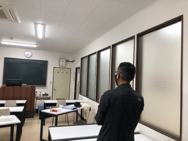 24期ドローンスクール始まりました! 2022年10月22日 本日よりドローンスクール24期、開始です! 今期は3名のお客様にお越しいただきました。 初日は座学なので、1日教室で勉強です。 6コマの座学のあとは、小型のドローンTelloを使って室内実習です。 皆さん上手に操作していて座学より楽しそうでした🎵 明日からの実技もこの調子で頑張りましょう!!
