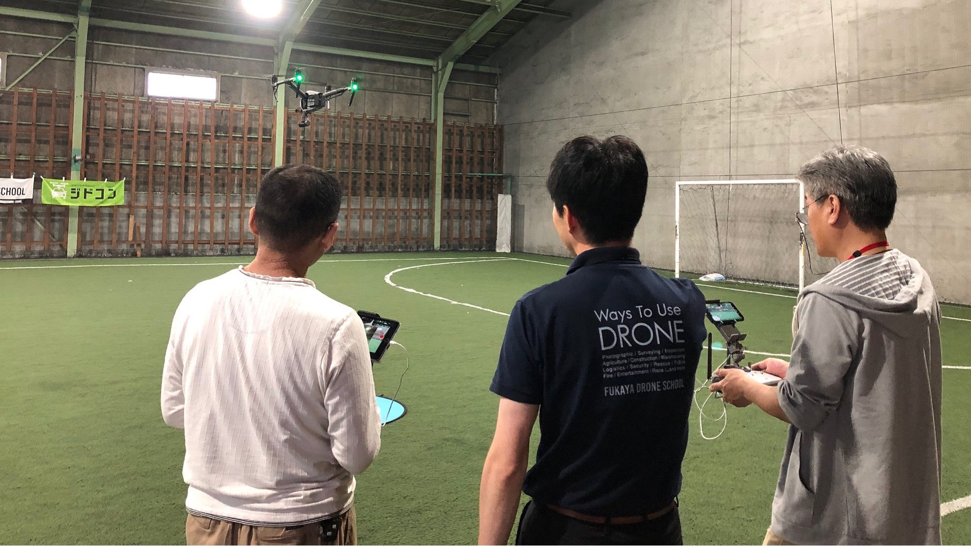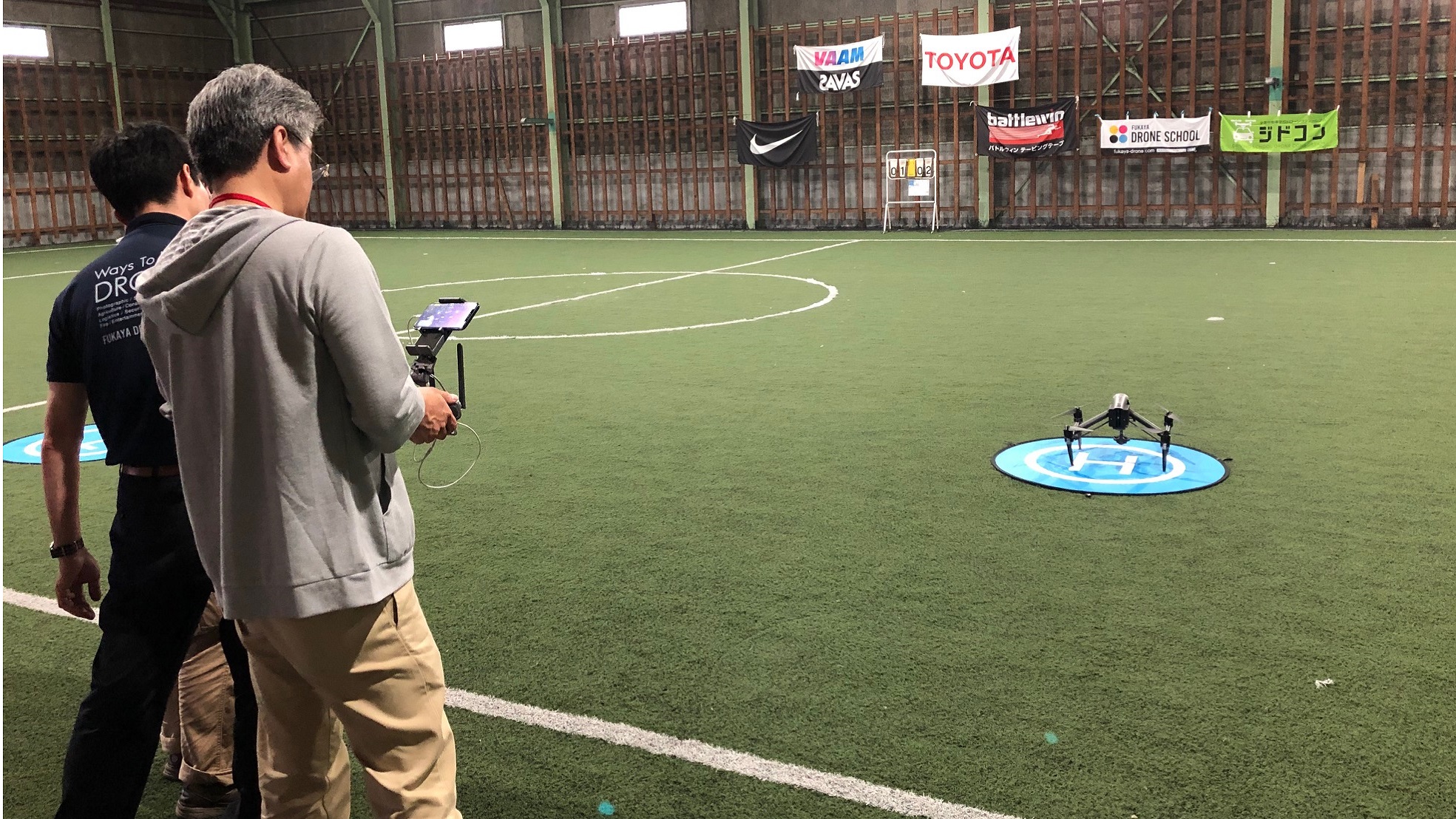 初日は座学、2日目は実技。写真は2日目の写真となりますが、DJI社製のドローン・インスパイア2を体験をしていただきました。主に使用するドローンより大きめの機体になりますが、皆さん上手に操作をしていました。