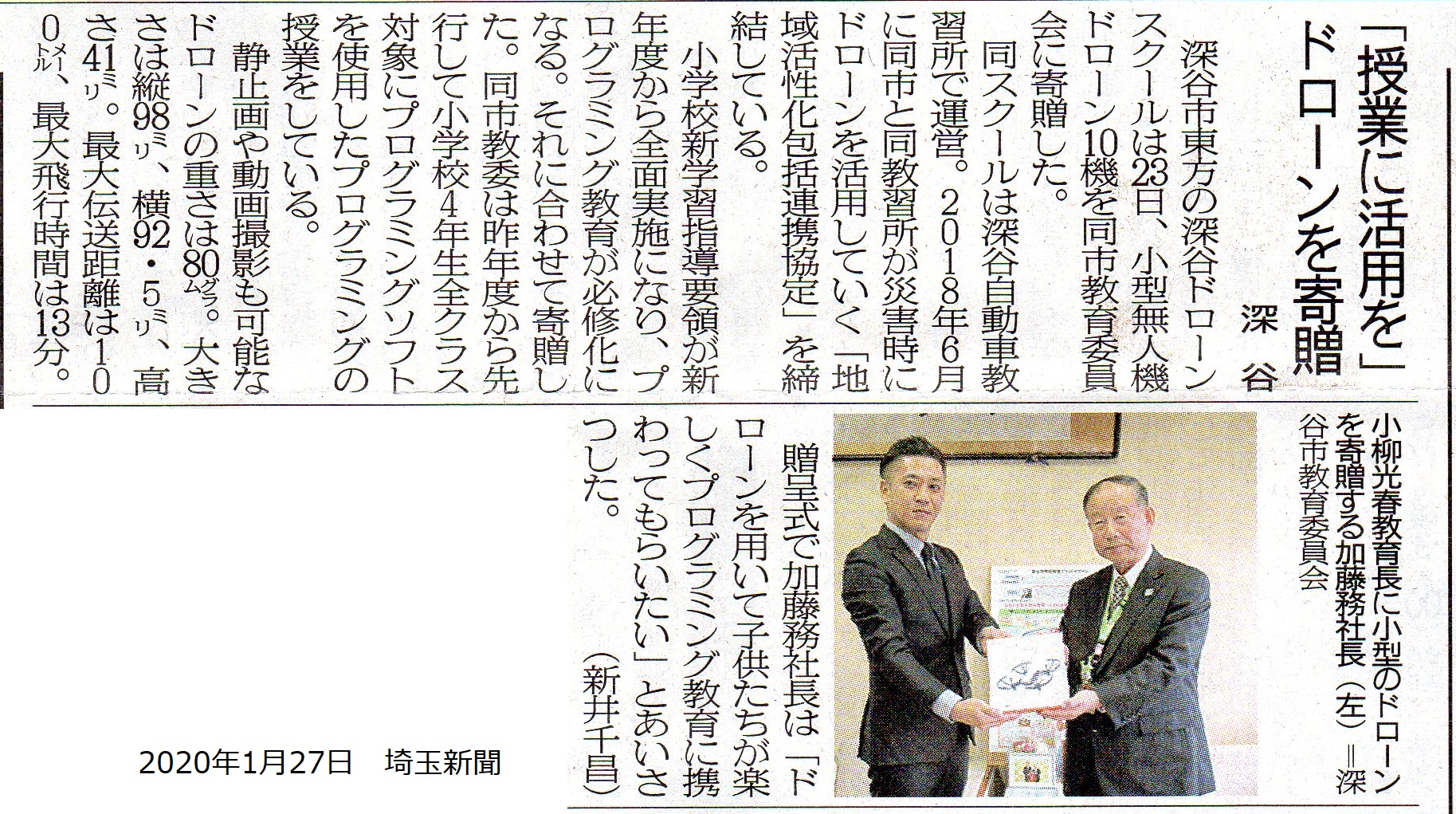 2020年1月23日に深谷ドローンスクール(運営:深谷自動車教習所)から